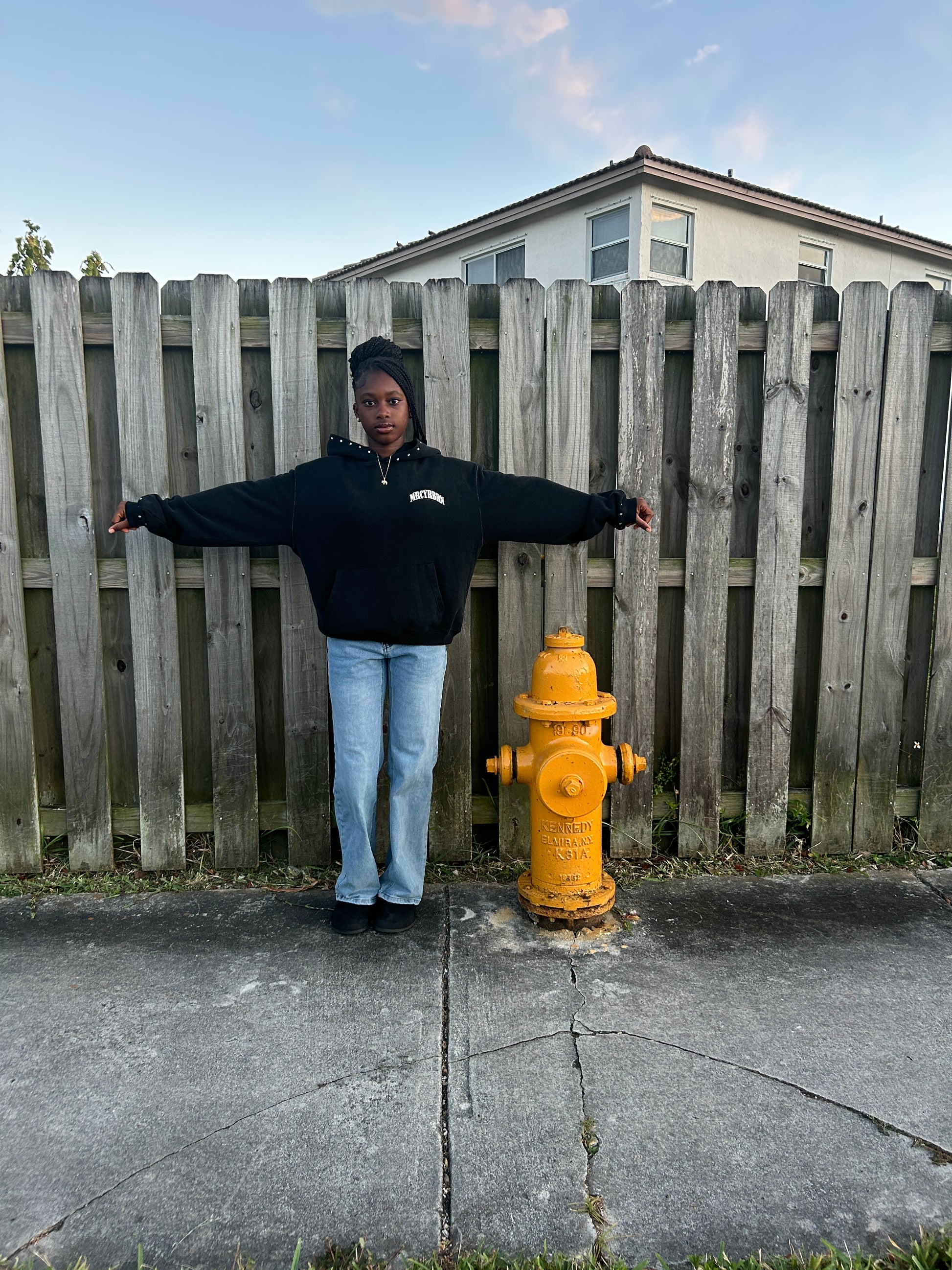MRCYRBRN RHINESTONE PULLOVER HOODIE BLACK